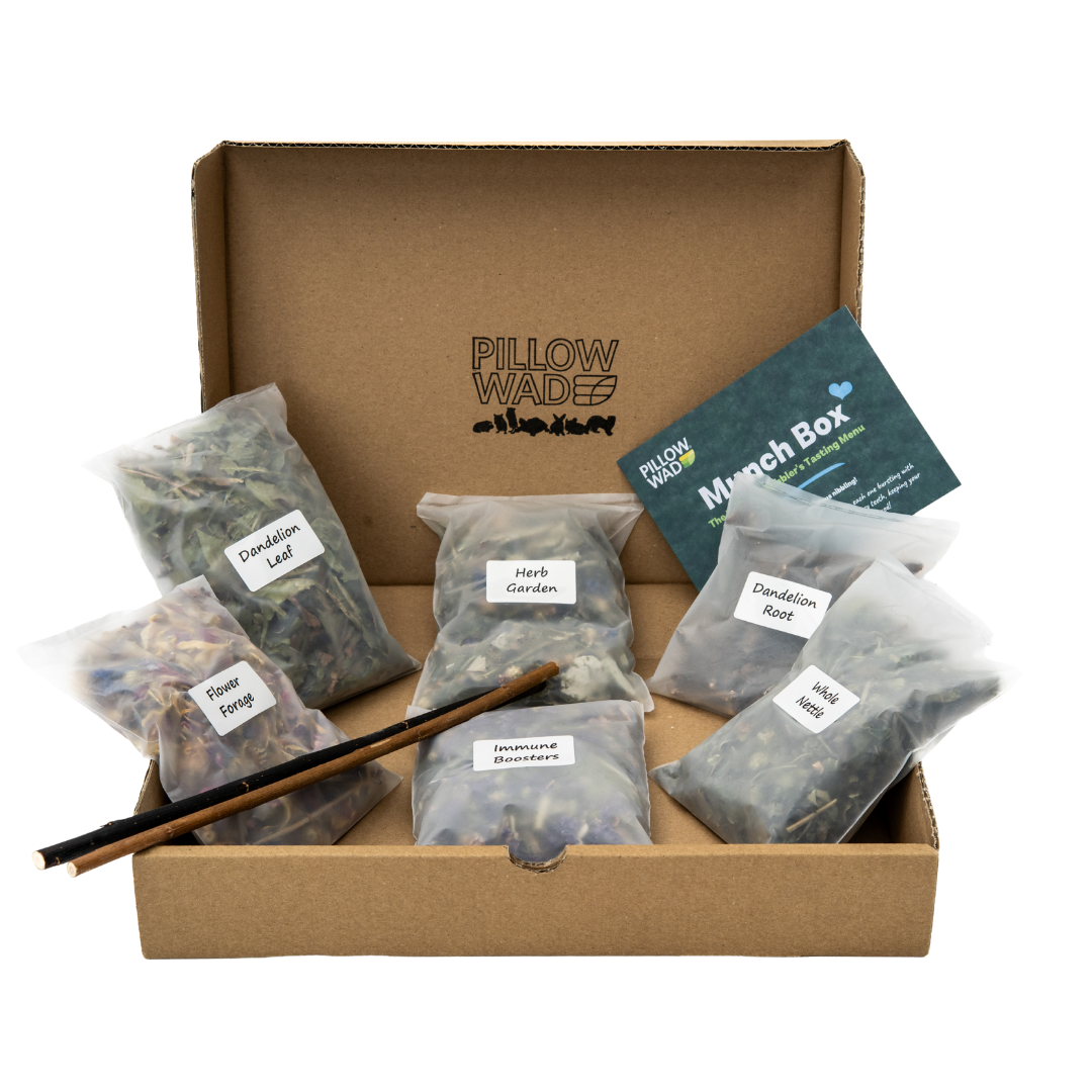 Each box includes Willow Sticks, Dandelion Root, Dandelion Leaf, Flower Forage, Herb Garden, Whole Nettle and our Immune Boosting mix.